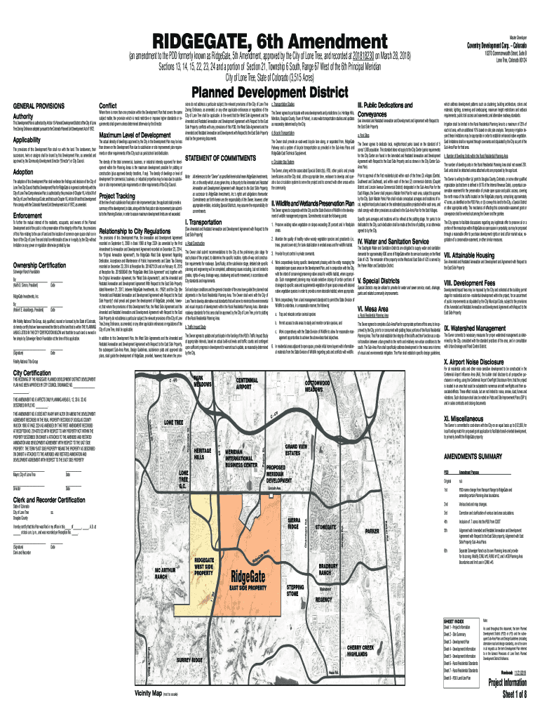 RELEGATE, 6th Amendment Master Developer Coventry Development Corp. Colorado(an amendment to the PDD formerly known as Relegate, 5th Amendment, approved by the City of Lone Tree, and recorded at 201818230