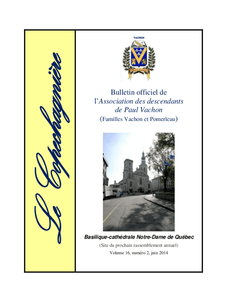 Le CopechagnireBulletin official DE association DES descendants de Paul Vac hon (Families Vac ho net Powerless)Basiliquecathdrale Notre-Dame de Qubec (Site Du pro chain assemblymen annual) Volume