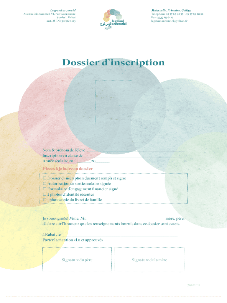 Le grand arc en Cain Avenue Mohammed VI, rue Germane Louis, Rabat AUT. MEN : 32/96 11/03Maternelle. Premiere. College Telephone 05 37 63 92 35 05 37 63 20 92 Fax 05 37 65 61 13 legrandarcenciel@yahoo.frDossier