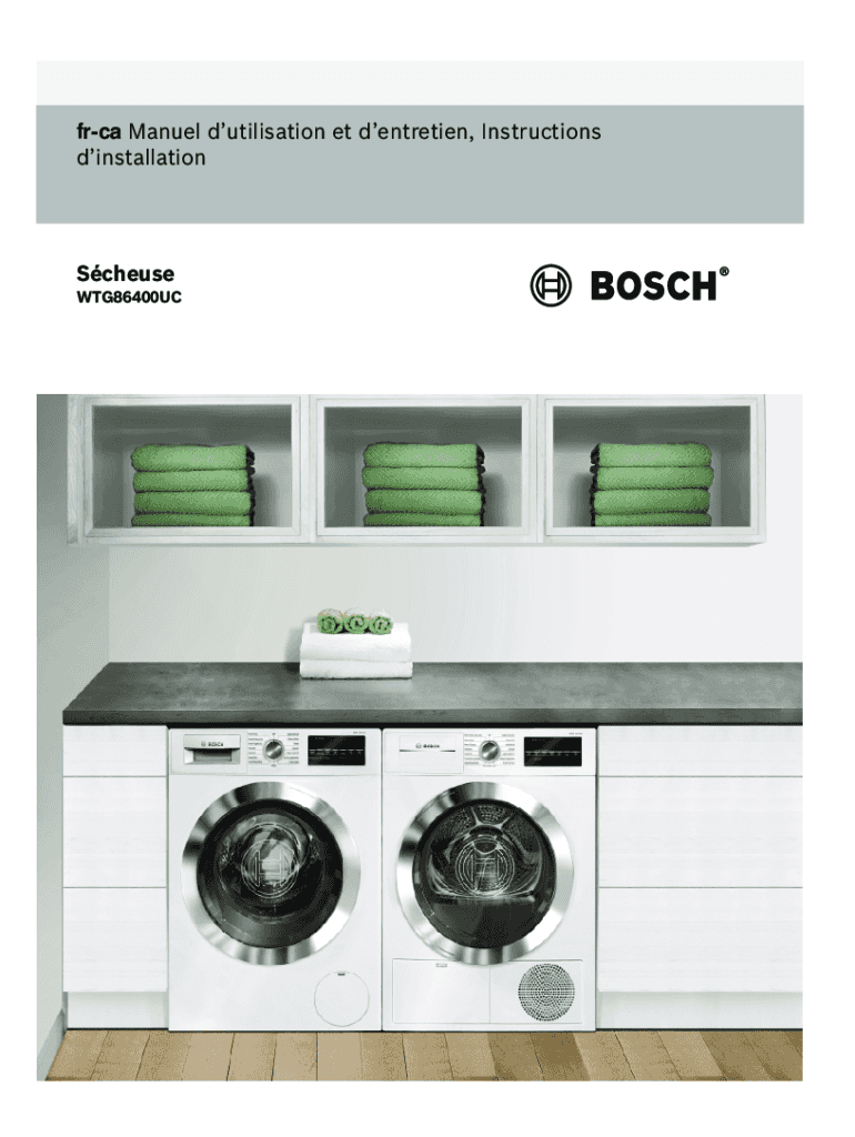 FCA Manuel utilization ET dentition, Instructions dinstallationScheuse WTG86400UCBienvenue vote novella scheme! Nous vows fictions pour l\'acquisition DE vote novella scheme Bosch. Nous Somme convinces