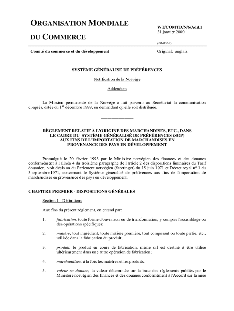 Organization MONDALE DU COMMERCE/COMTE/N/6/Add.1 31 Janvier 2000 (000368)Comic Du commerce et Du dveloppementOriginal: anglaisSYSTME GRATIS DE PREFERENCES Notification DE la Nerve Addendum La Mission