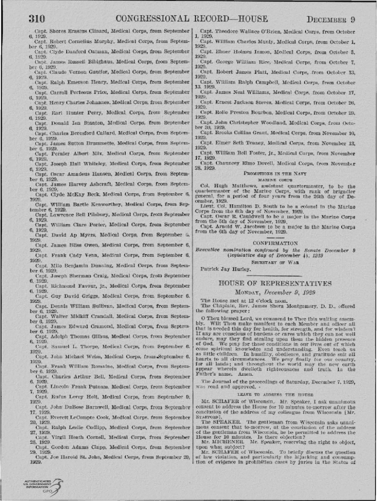 310CONGRESS!ORAL RECORDHOUSECapt. Shores Erasmus Lizard, Medical Corps, from September 6, 1929. Capt. Robert Cornelius Murphy, Medical Corps, from September 6, 1929. Capt. Clyde Sanford Batman, Medical
