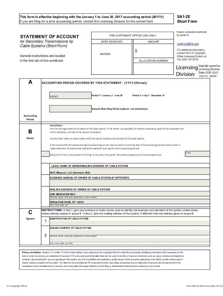 This form is effective beginning with the January 1 to June 30, 2017, accounting period (2017/1) If you are filing for a prior accounting period, contact the Licensing Division for the correct form.