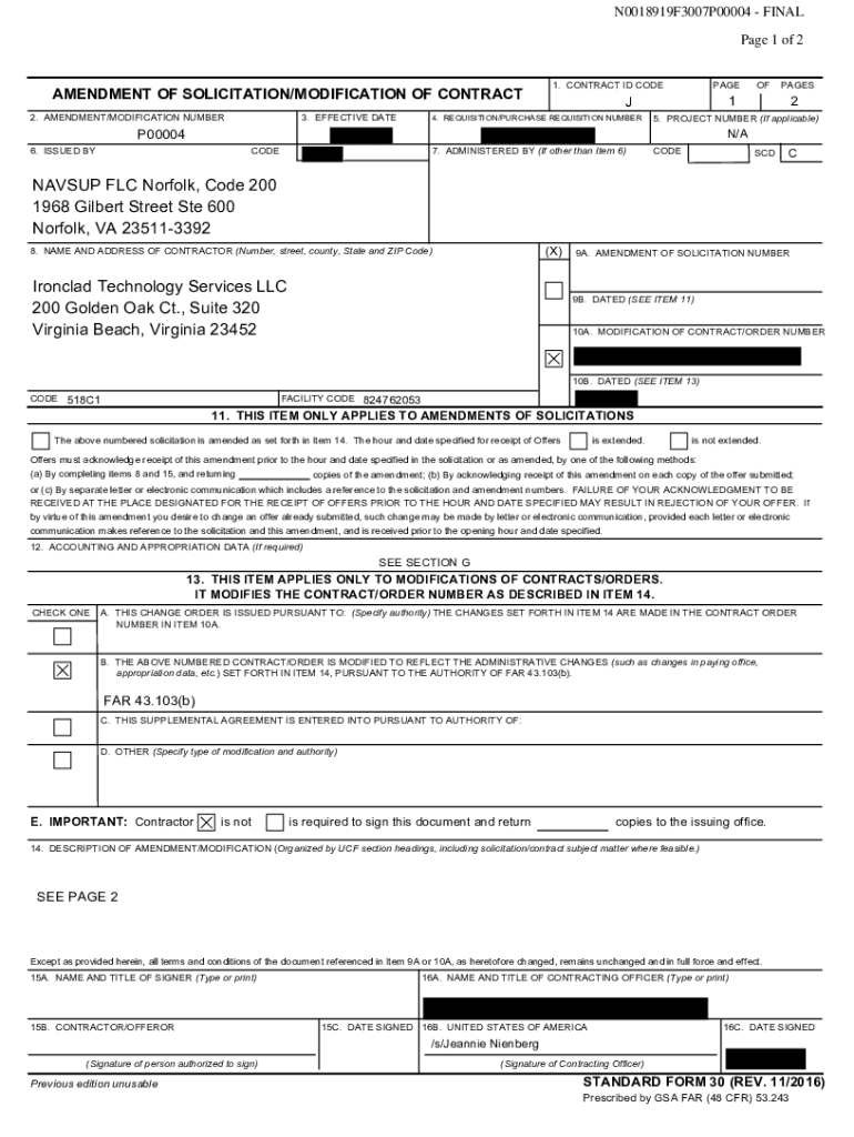Get the free N0018919F3007P00004 - FINAL 1 2 AMENDMENT ... - ironcladts.com