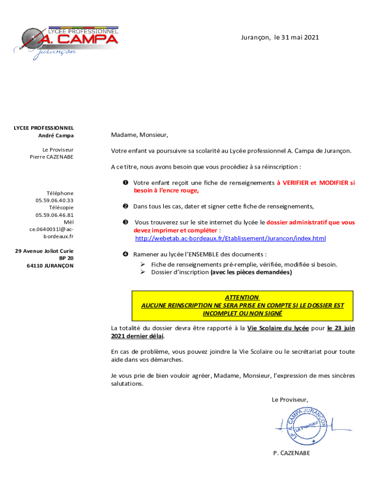 Jurado, LE 31 Mai 2021LYCEE PROFESSIONAL And Camp Le Provider Pierre CAZENABEMadame, Monsieur, Vote Enfant VA courseware SA solaria AU Lace professional A. Camp de Juranon. A CE title, nous Avon begin