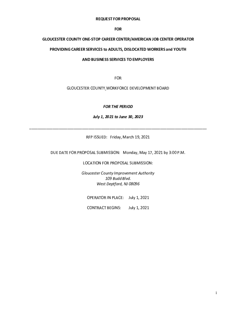Get the free REQUEST FOR PROPOSAL FOR GLOUCESTER COUNTY ONE-STOP CAREER ...