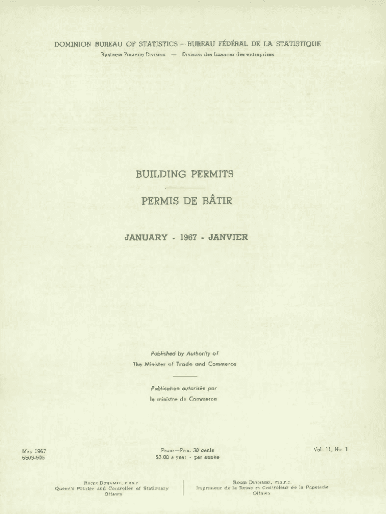 DOMINION BUREAU OF STATISTICS BUREAU FEDERAL DE LA STATISTICS Business Finance Division DES finances DES entreprisesBUILDING PERMITS PERMIT DE BATIK JANUARY 1967 JANVIERPublished by Authority of The