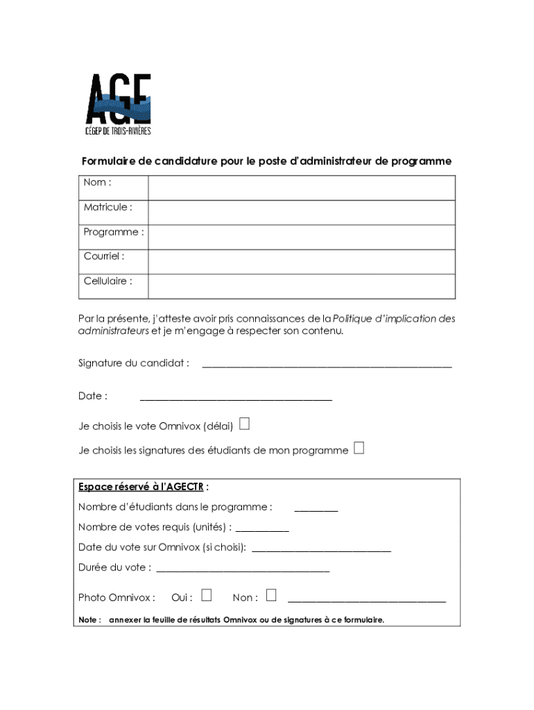 Get the free Formulaire de mise en candidature au Conseil d ...