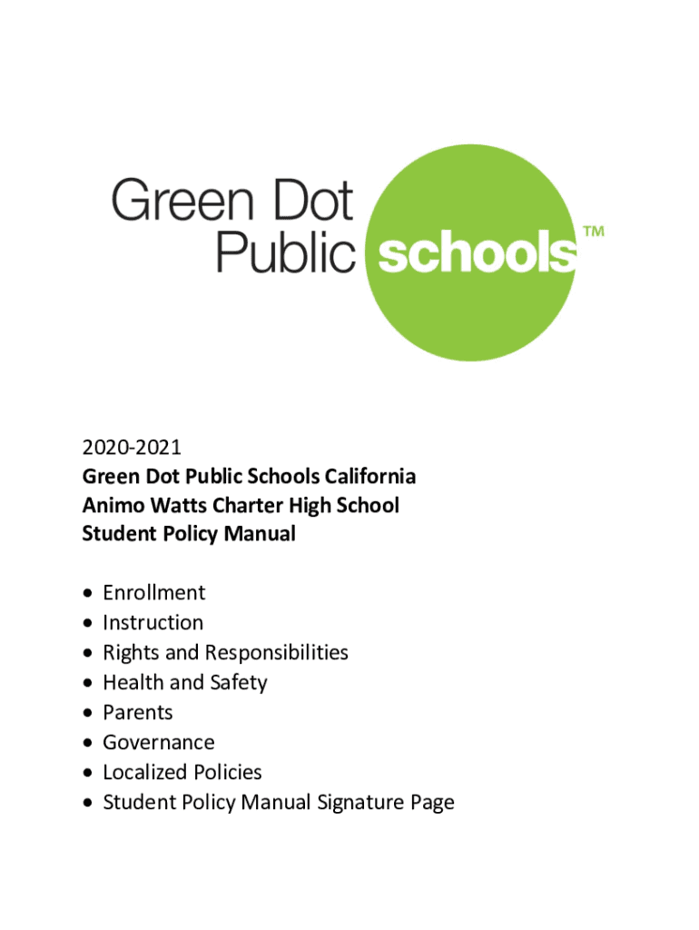 20202021 Green Dot Public Schools California Anime Watts Charter High School Student Policy Manual Enrollment Instruction Rights and Responsibilities Health and Safety Parents Governance Localized