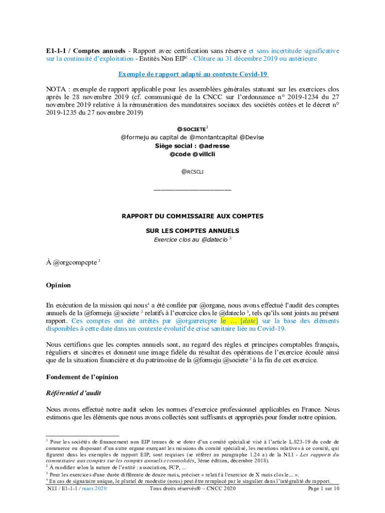 E111 / Competes annuals Rapport Alec certification sans serve ET sans incertitude signification SUR la continuity exploitation Entity Non EIP1 Culture AU 31 December 2019 of antique Example DE rapport