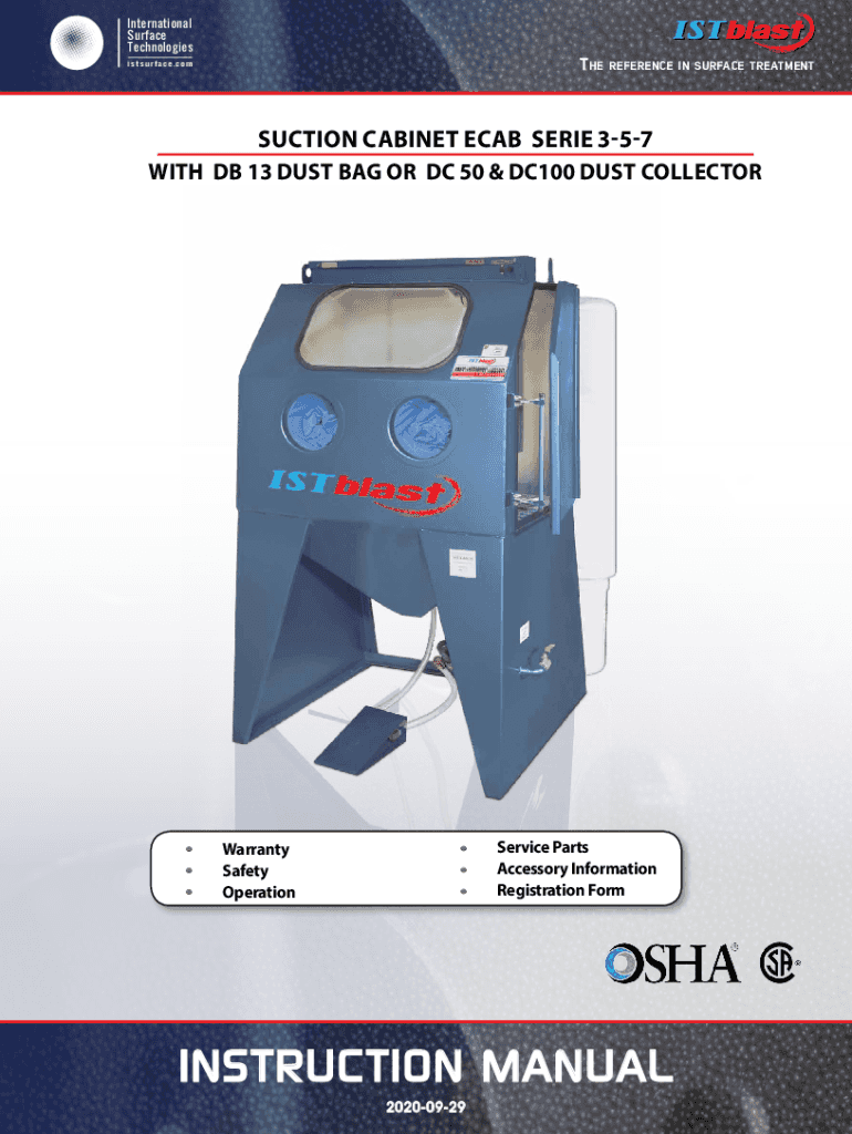 International Surface TechnologiesTheistsurface.com reference in surface treatmentSUCTION CABINET CAB SERIES 357 With DB 13 Dust bag or DC 50 & DC100 Dust collectorService PartsAccessory InformationRegistration