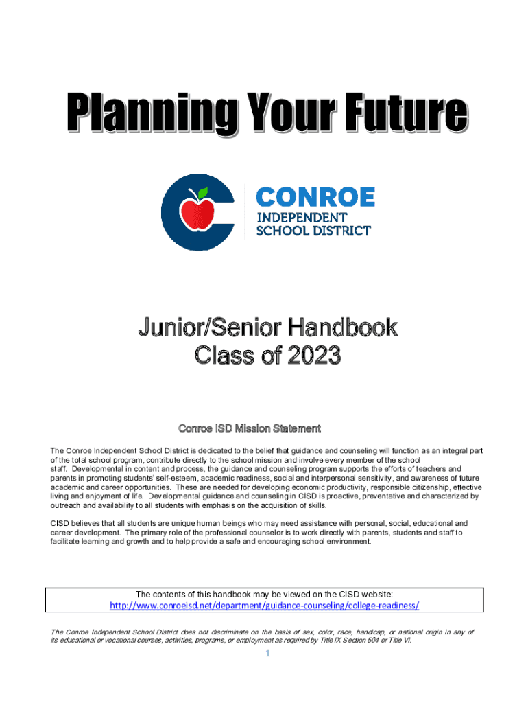 Junior/Senior Handbook Class of 2023 Conroe ISD Mission Statement The Conroe Independent School District is dedicated to the belief that guidance and counseling will function as an integral part of