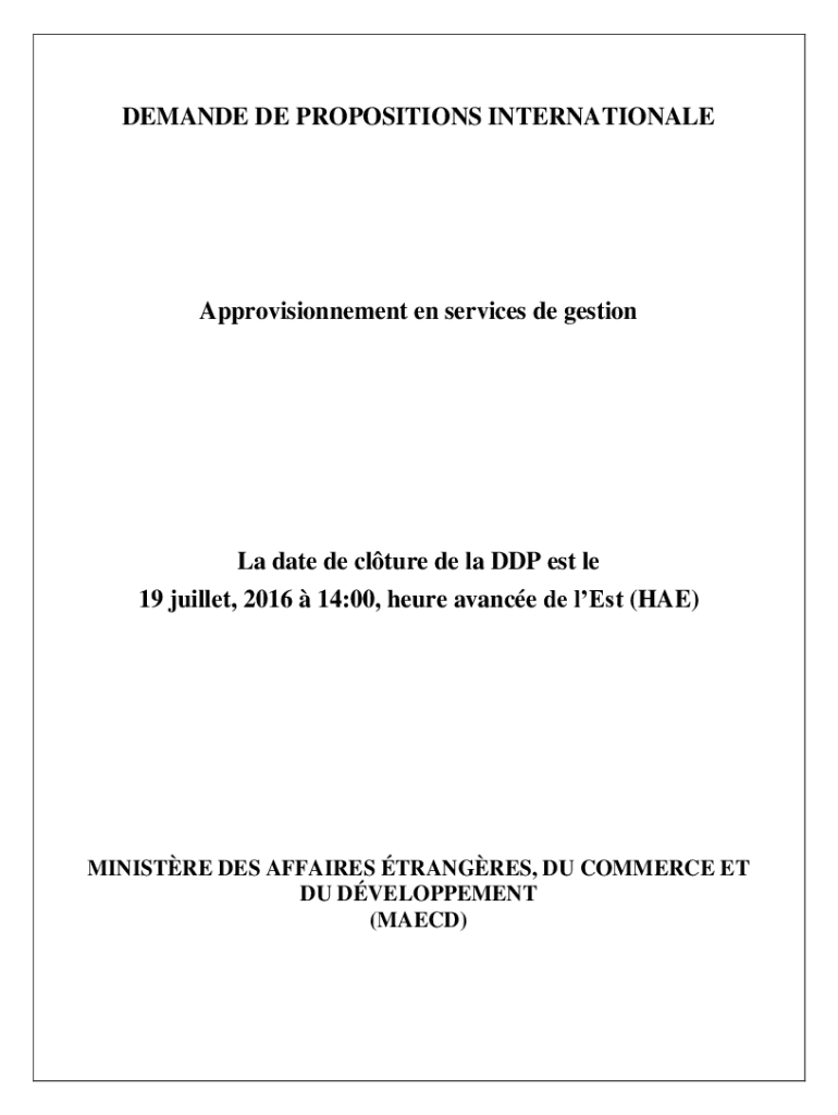 DEMAND DE PROPOSITIONS INTERNATIONALEApprovisionnement en services de Estonia date DE culture DE la DD Pest LE 19 bullet, 2016 14:00, here advance DE lest (HAE)MINISTRY DES AFFAIRS RANGES, DU COMMERCE