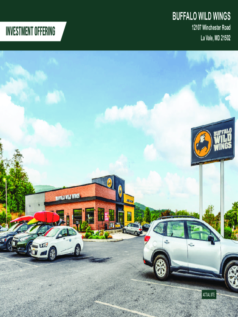 BUFFALO WILD WINGS investment offering12107 Winchester Road La Vale, MD 21502ACTUAL SITEDISCLAIMERTABLE OF CONTENTSThis Marketing Package was prepared by Hertz Real Estate Investment Services and