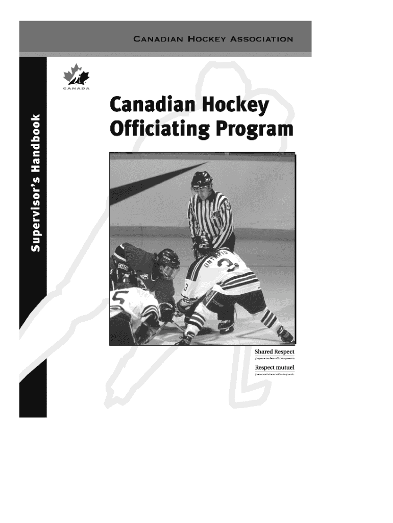 ACKNOWLEDGEMENTS The CIA wishes to express its appreciation to Kevin Munch, Head Supervisor, SHA, and Director of Development, Western Hockey League for his work in the current revision of this publication.