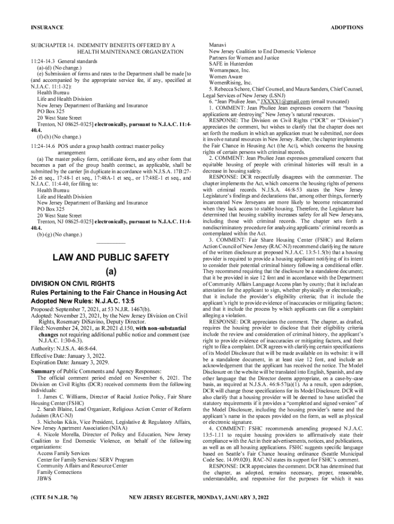 INSURANCEADOPTIONSSUBCHAPTER 14. INDEMNITY BENEFITS OFFERED BY A HEALTH MAINTENANCE ORGANIZATION 11:2414.3 General standards (a)(d) (No change.) (e) Submission of forms and rates to the Department