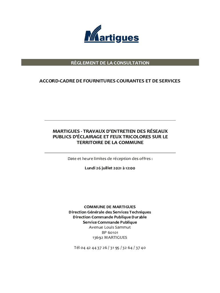 Get the free Rglement de la consultation Accord-cadre de Fournitures ...