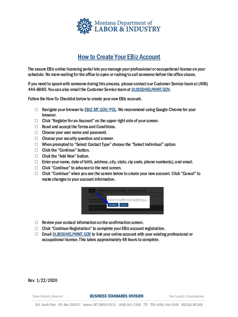 How to Create Your BIZ Account The secure BIZ online licensing portal lets you manage your professional or occupational license on your schedule. No more waiting for the office to open or rushing