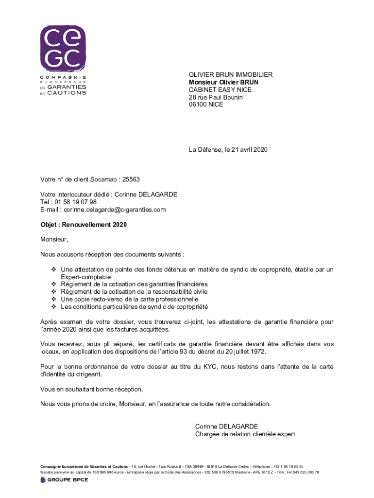 Gather all the necessary information about the syndic de coproprit, such as their contact details, insurance requirements, and any specific instructions provided.