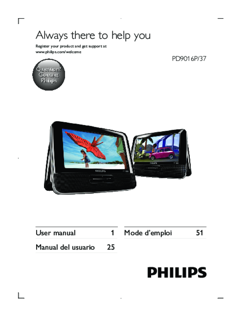 Always there to help you Register your product and get support at www.philips.com/welcomePD9016P/37Question? Contact PhilipsUser manualManual Del usuario1 25Mode demploi51Table DES matures 53Scurit