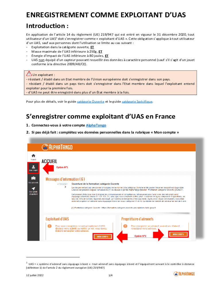 Le formulaire registering as a uas doit être correctement rempli avec toutes les informations requises.