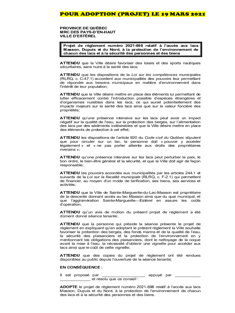 POUR ADOPTION (PROJECT) LE 19 MARS 2021 PROVINCE DE QUEBEC MRC DES PAYSDENHAUT VILLA KESTREL Project DE element humor 2021698 related lacks aux lack Mason, Lupus et Du Word, la protection DE environment