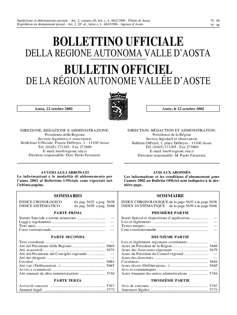 Sedition in abbonamento postal Art. 2, comma 20, left. C, L. 662/1996 Filial DI Aorta Expedition en atonement postal Art. 2, 20e all., letter c, L. 662/1996 Agency Austen. 46 N 46BOLLETTINO OFFICIAL