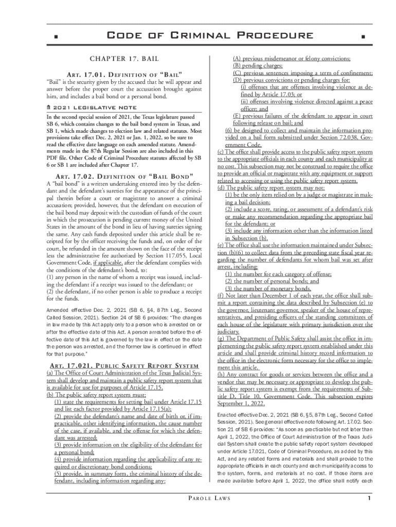 Code of Criminal Procedure CIA PT ER 1 7. B A IL A RT. 17. 01. D E F I N I T I O OF B A I Bail is the security given by the accused that he will appear and answer before the proper court the accusation