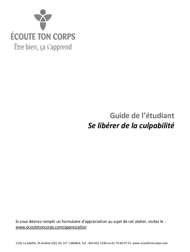 Get the free www.ecoutetoncorps.comfiles5715/2035/9019Guide de ltudiant Se librer de la culpabilit