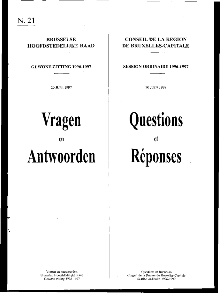 BRUSSELS HOOFDSTEDELIJKE RAADCONSEIL DE LA REGION DE BRUXELLESCAPITALEGEWONE HITTING 19961997SESSION ORDINARY 1996199720JUNI199720JUIN1997Questions enetAntwoordenReponsesVragen en Antwoorden Brussels