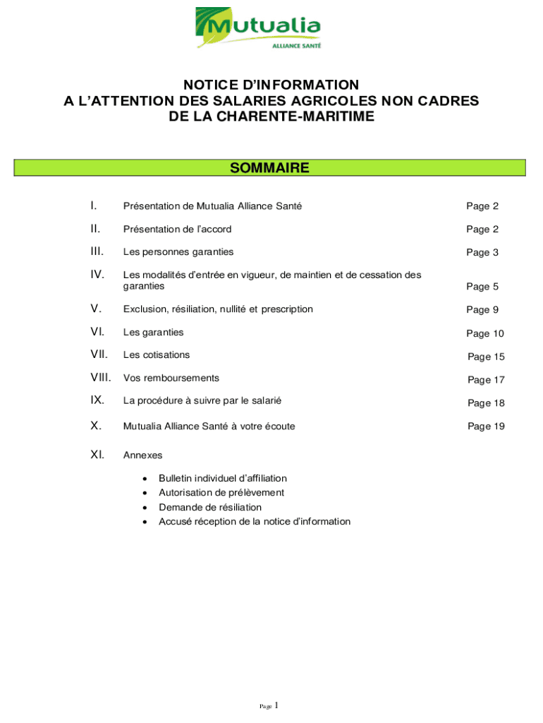 Get the free notice d'information a l'attention des salaries agricoles non cadres ...