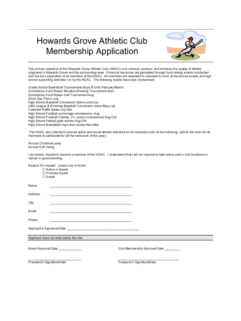 Get the free New Member Application FormHowards Grove Athletic ...