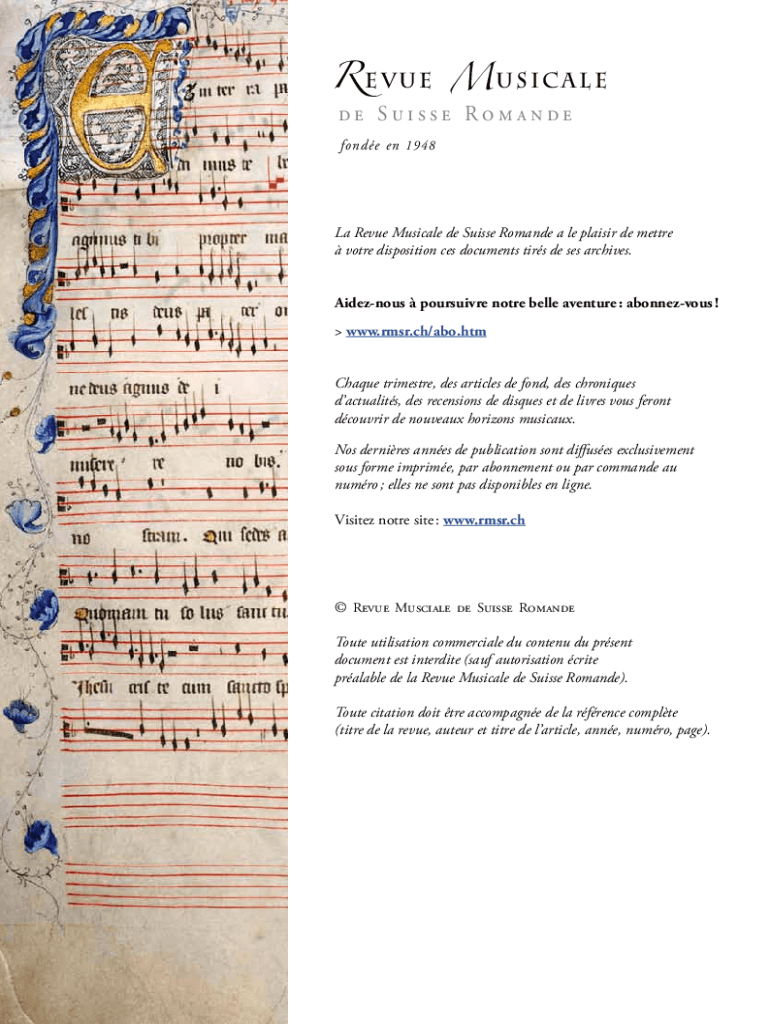 Fill out your revue musicale de suisse online with pdfFiller!