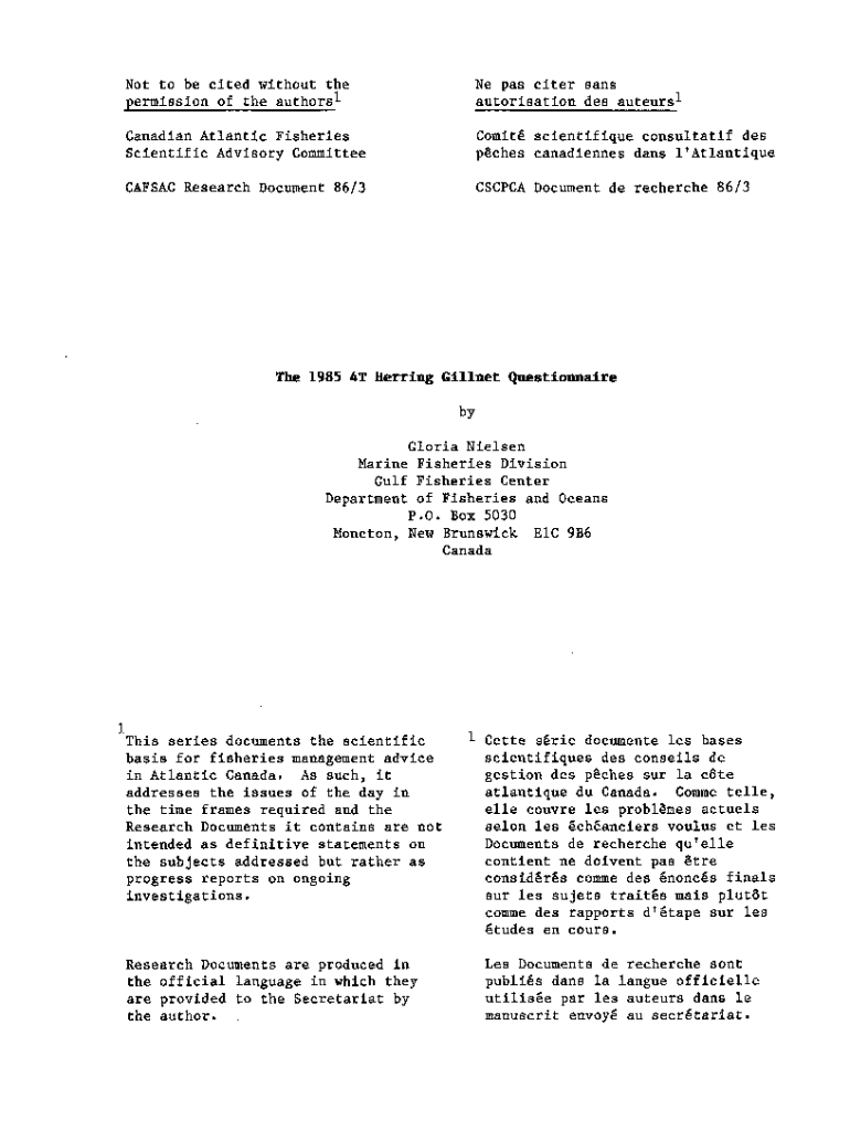 Not to be cited without the permission of the authors 1Ne pas cited sans authorization DES auteurslCanadian Atlantic Fisheries Scientific Advisory CommitteeComite scientific consultation DES peaches