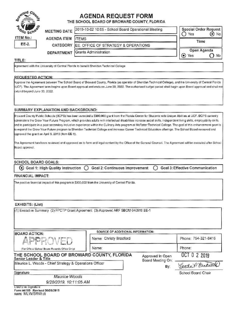 ... Lord C 0 \'\'\'\'\'\'.’d. \'\'\'\'/ Q1AGENDA REQUEST FORM\'\':\'_:::. \'THE SCHOOL BOARD OF BROWARD COUNTY, Florida(_....o6ITEM No.:Special Order Request Yes @ Meeting DATE 20191002 10:05 School