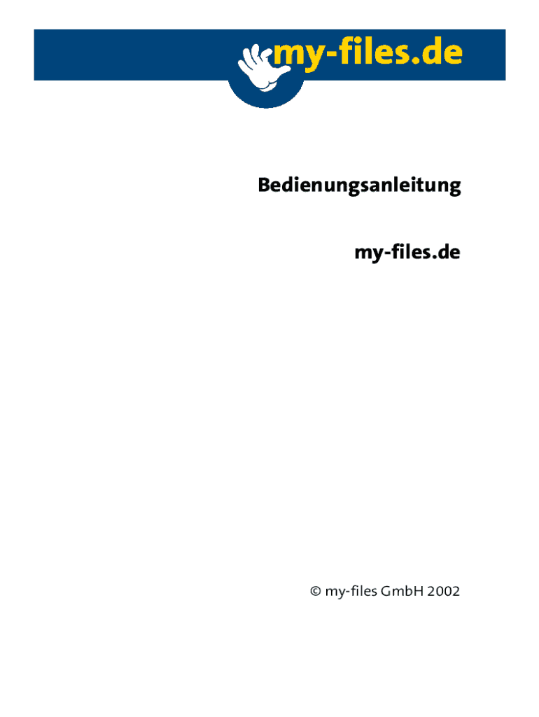 Bedienungsanleitung my files.DE my files GmbH 2002Seite 2Bedienungsanleitung myfilesInhaltsverzeichnis 1. Einleitung42.berblick52.1. 2.2. 2.3. 2.4. 2.5.3. Navigationselemente ..........................................................................