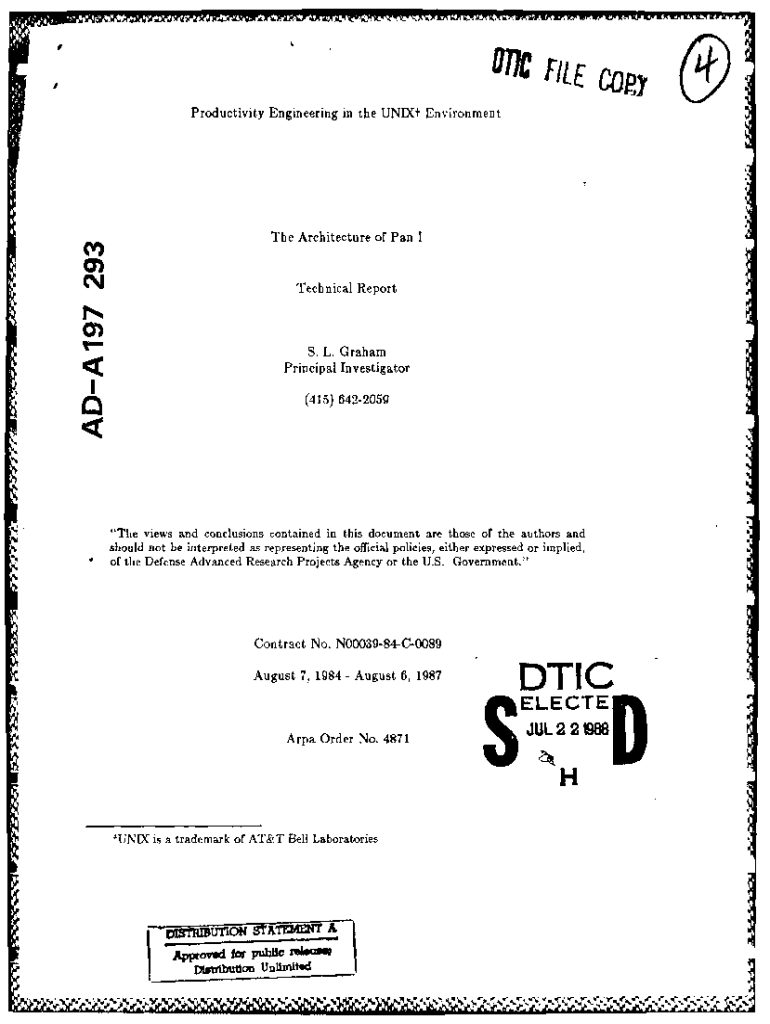 . G7CLF/Li E in productivity Engineering in the Unit Environment Architecture of Pan Technical Reports. L. Graham Principal Investigator(415) 6422059\'The views and conclusions contained in this document