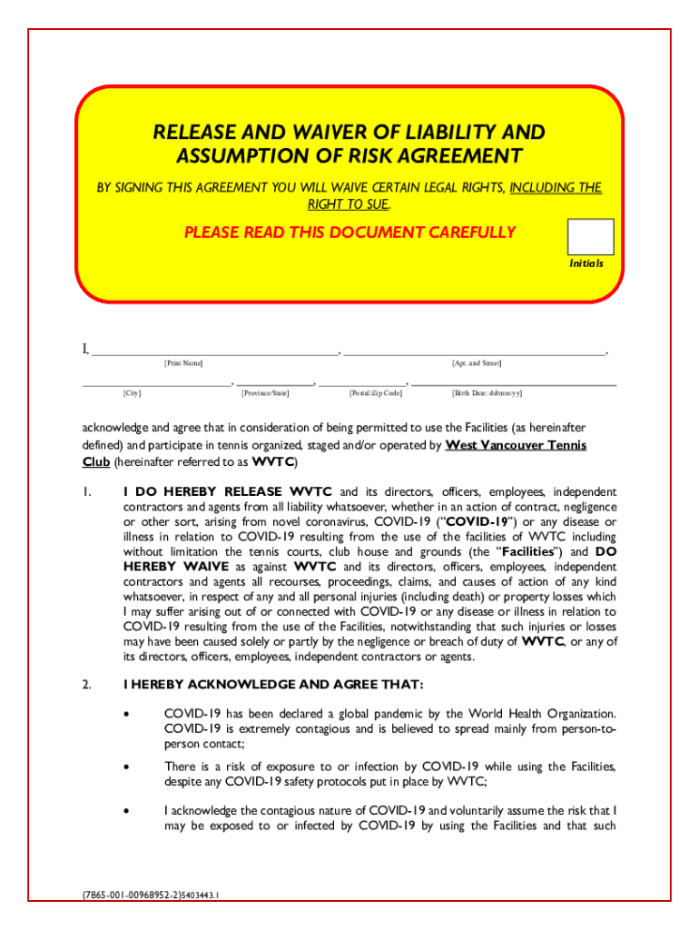 Get the free RELEASE OF LIABILITY, WAIVER OF CLAIMS, ASSUMPTION OF RISK ...