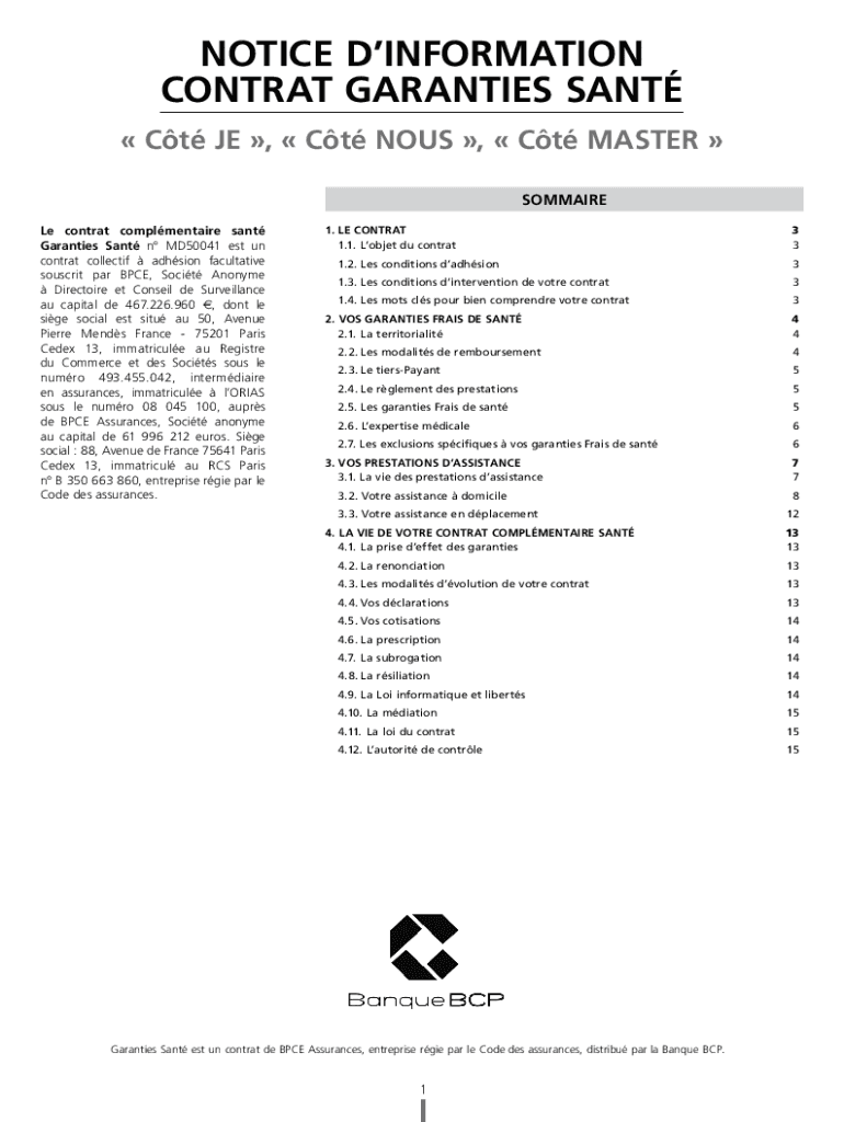 NOTICED INFORMATION CONTRACT GUARANTIES SENT Ct JE, Ct NOUS, Ct MASTER SUMMARY Le contract complementary sent Guaranties Sent n MD50041 est UN contract collect if adhesion facultative Sanskrit par