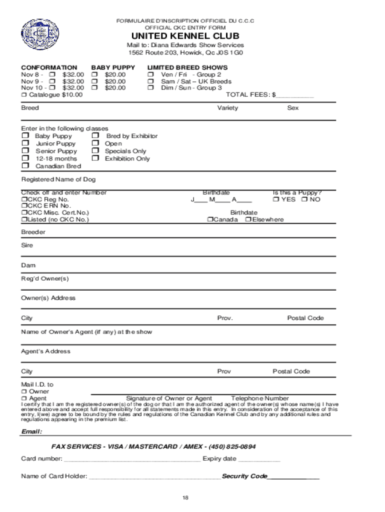 Get the free www.canuckdogs.comuploadDogShowDocsOFFICIAL CANADIAN KENNEL CLUB ENTRY FORM KAWARTHA...