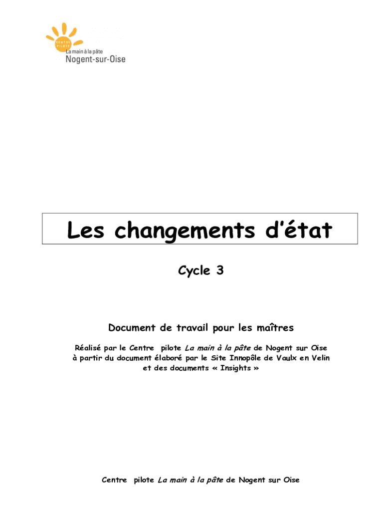Get the free Les changements d'tat - Centre pilote la mainla pte