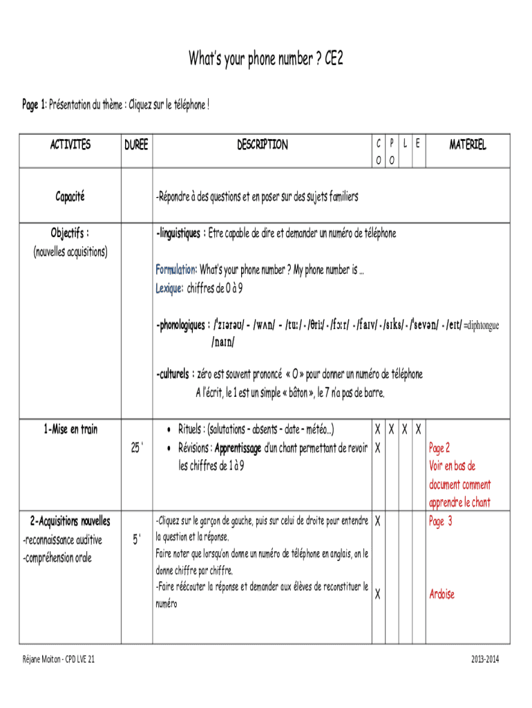 What's your phone number ? CE2 Page 1: Presentation Du the : Clique SUR LE phone ! ACTIVITESDUREECapacitDESCRIPTIONC OP OLEMATERIELRpondre DES question set en poser SUR DES sets familiersObjectifs