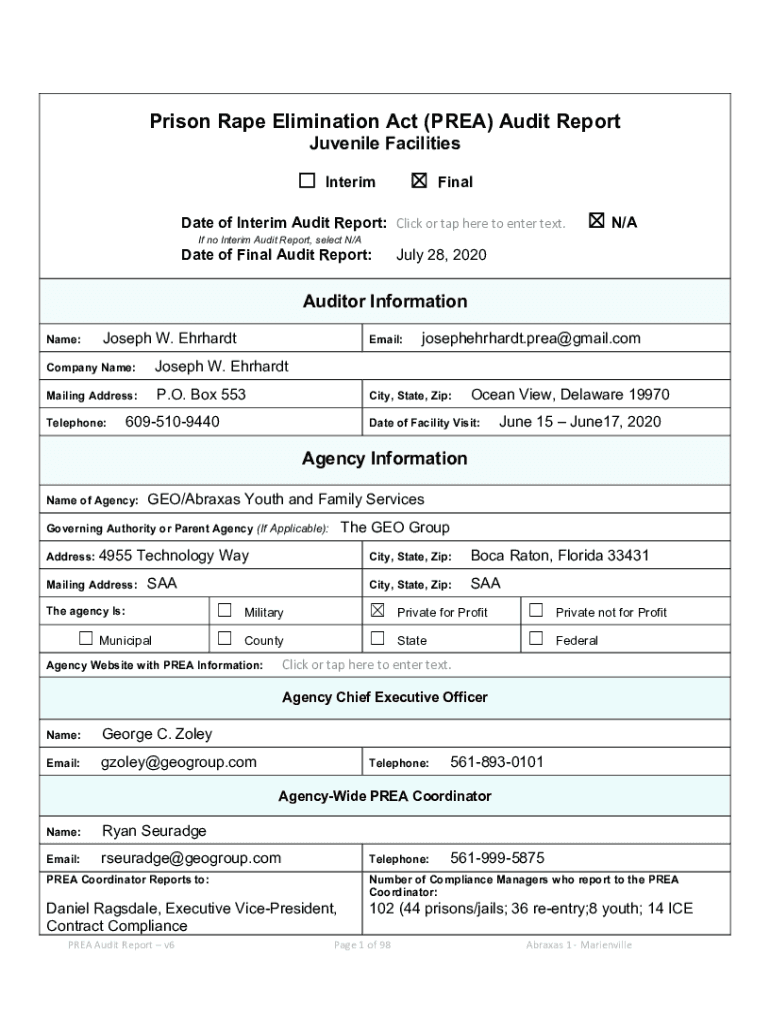 Get the free PREA AUDIT: AUDITORS SUMMARY REPORT - GEO Group