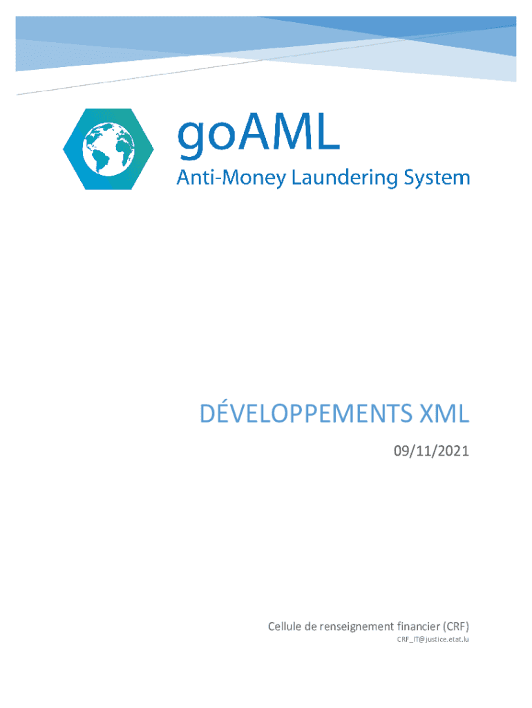 DEVELOPMENTS XML 09/11/2021Cellule de enslavement financier (CRF) CRF_IT@justice.etat.luContents 1Procdure ..............................................................................................................................................