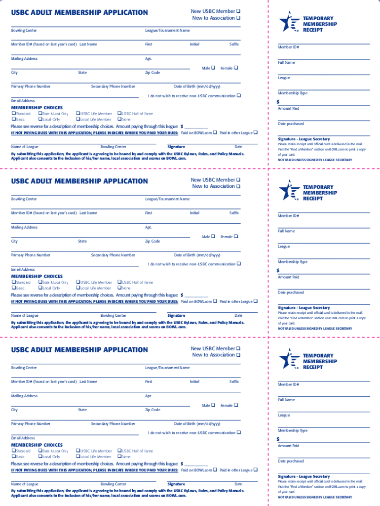 The wvusbcbacom forms adultmembershipapplicationusbc adult is a membership application form for adults to join the United States Bowling Congress.