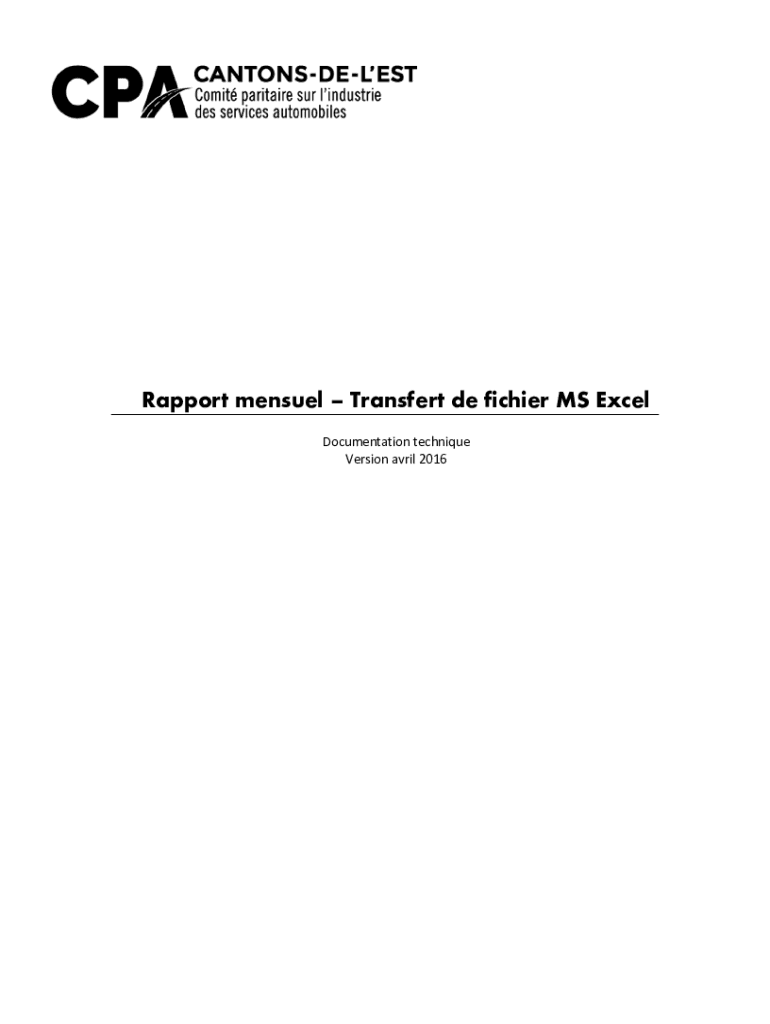 Rapport Manuel Transfer DE fishier MS Excel Documentation technique Version April 2016Rapport Manuel Transfer DE fishier MS Excel2Rapport Manuel Transfer DE fishier MS Executable DES MATURES Objectify