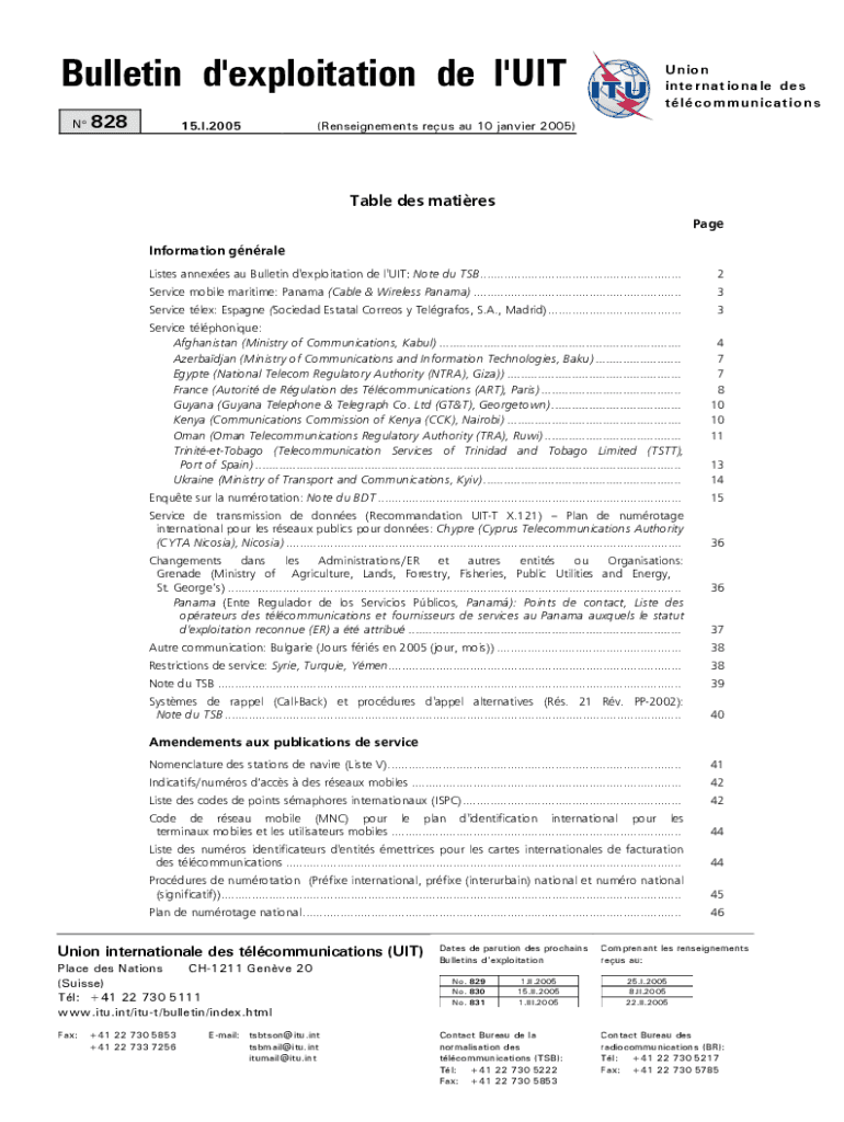 Get the free Bulletin d'Exploitation de l'UIT No 828 - 15.I.2005. Template BEF2004.dot