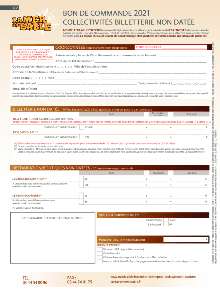1/2BON DE COMMAND 2021 COLLECTIVISTS BILLETTERIE NON DATEOFFRE EXCEPTIONALLY JUST 4 GRATUITY SUPPLMENTAIRES(1) POUR ROUTE COMMAND DE BILLETTERIE NON DATE ACCOMPANY DU ELEMENT SAVANT LE 5 MARS 2021COORDONNES