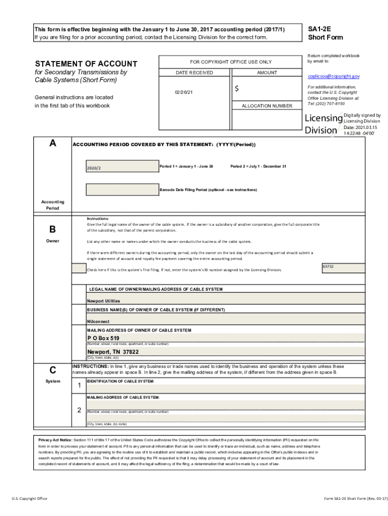 This form is effective beginning with the January 1 to June 30, 2017, accounting period (2017/1) If you are filing for a prior accounting period, contact the Licensing Division for the correct form.