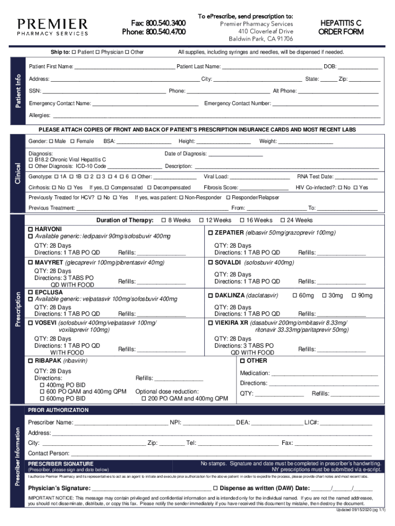 Get the free 800.540.4700 HEPATITIS C ORDER FORM - Premier Pharmacy ...